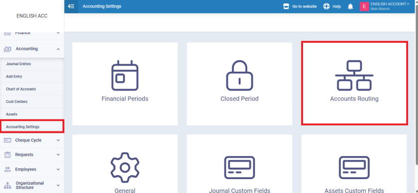 After creating the account, go to “Accounting Settings”, then open the “Accounts Routing” tab.