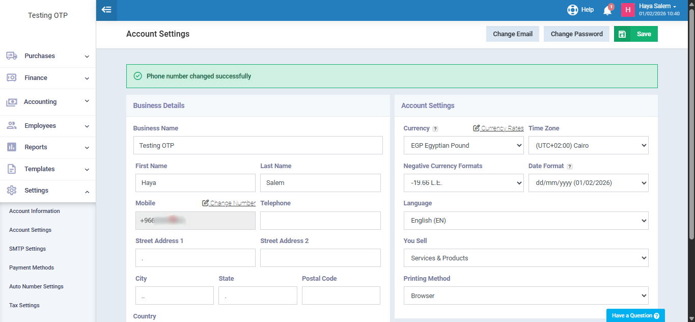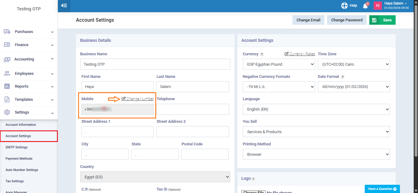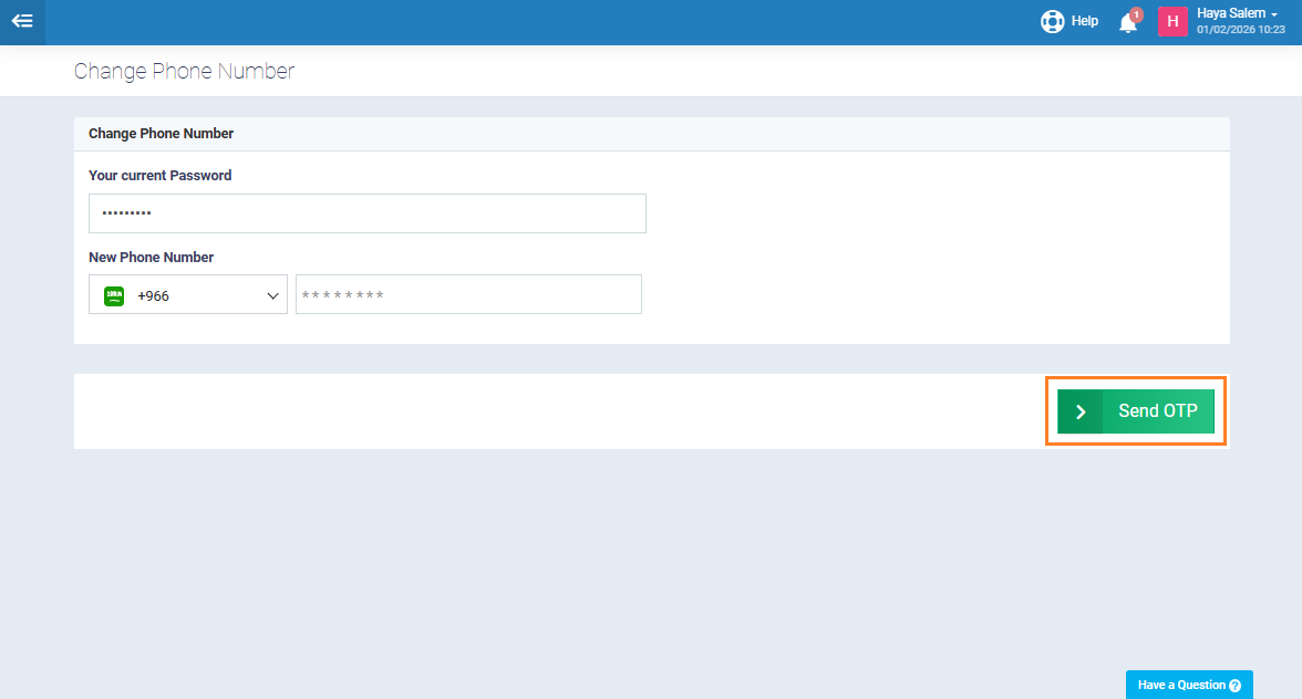 The system will redirect you to a dedicated screen where you are required to enter the account’s current password and the new mobile number. This step is necessary to verify the user’s identity and ensure account security before completing the change.