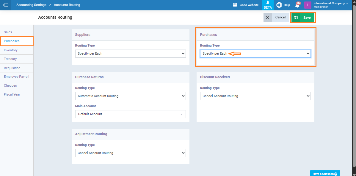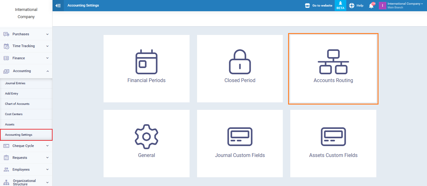 From the main menu, go to “Accounting”, then “Accounting Settings” and select “Accounts Routing.”