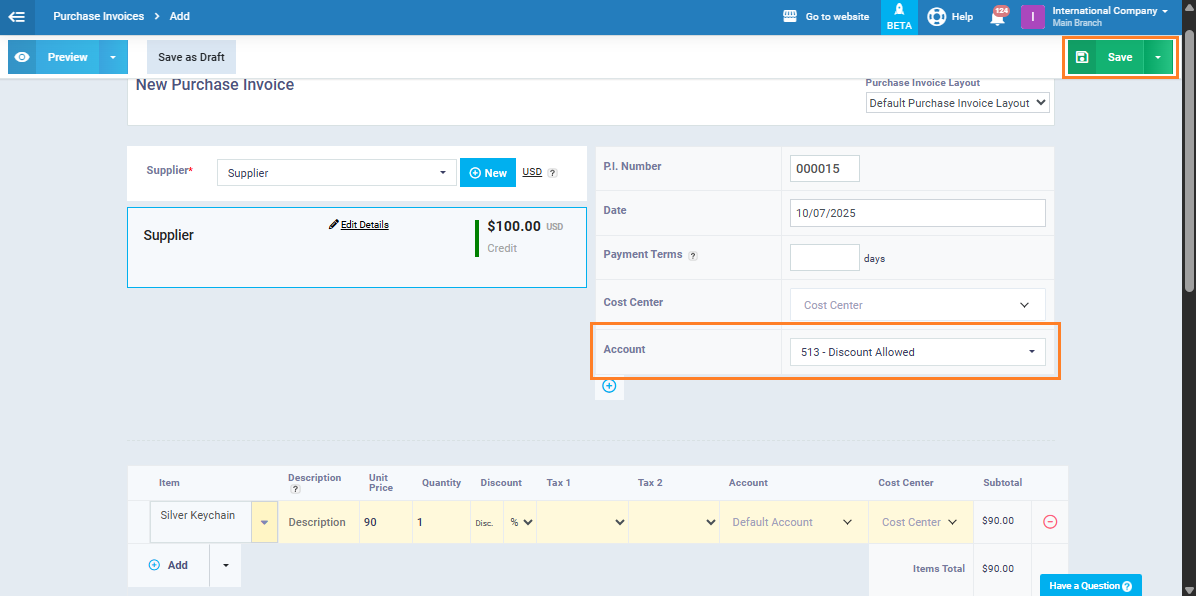 Sometimes, your business may need to create a purchase invoice and directly link it to a particular expense account to ensure accurate financial tracking and proper expense categorization. Follow the steps below to complete this process easily.