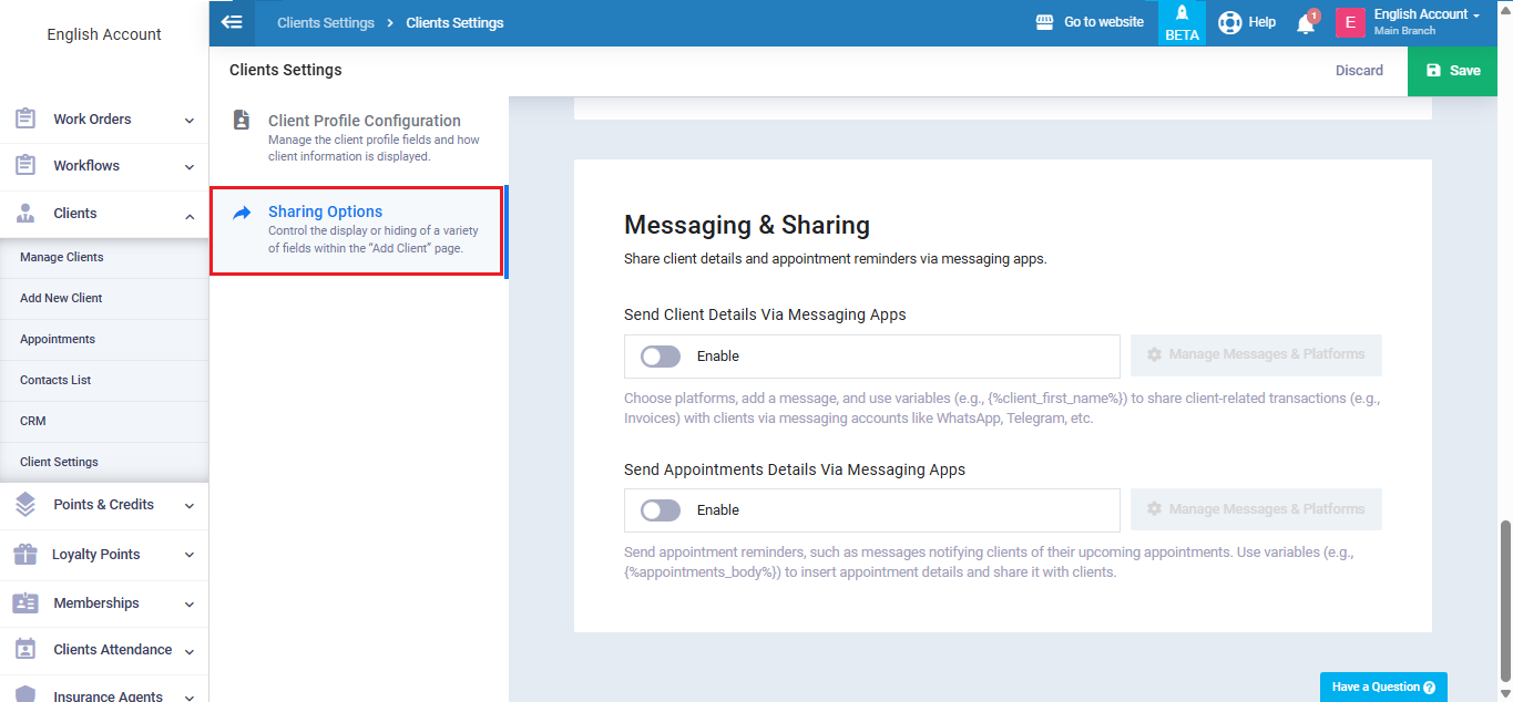 Most of these settings have been explained in separate topics which you can refer to, and here we provide an overview of the general settings for clients.
