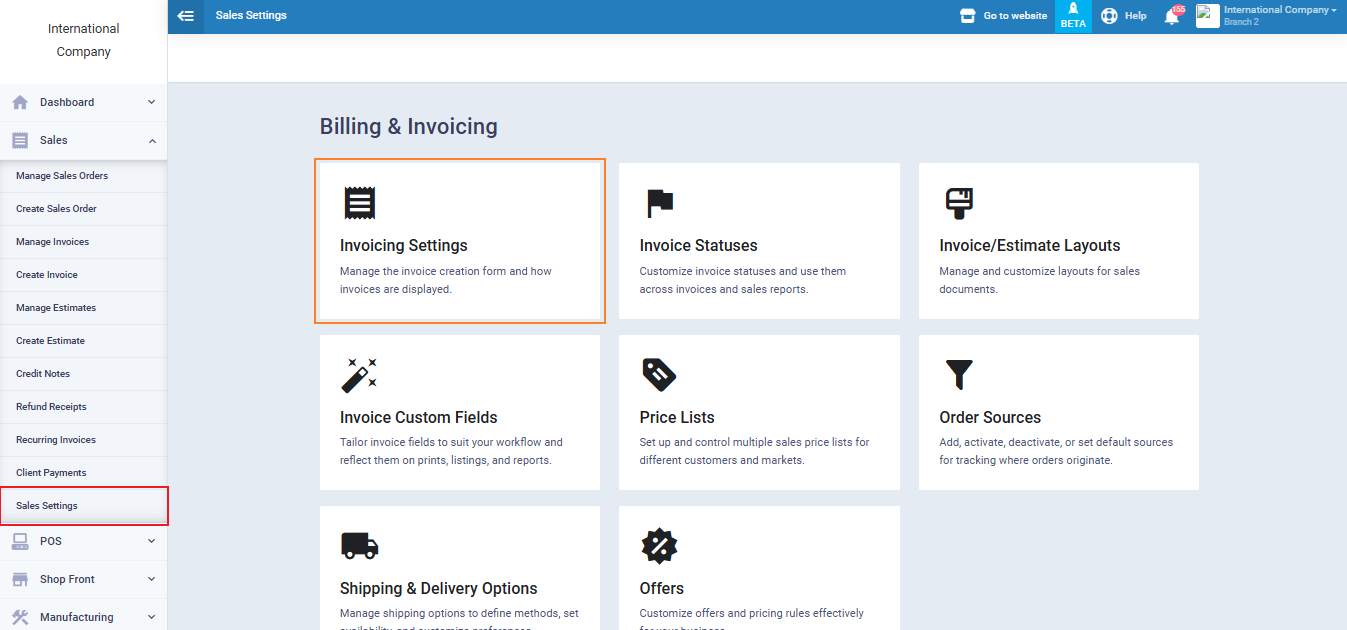 First, click on ‘Sales‘ from the main menu, then click on ‘Create Invoice.’