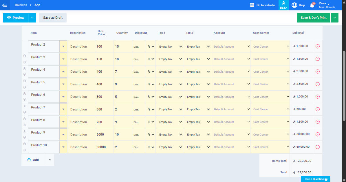 - As seen in the previous image, all the invoice items’ data has been added at once without copying and pasting data for each item individually or manually adding them from the invoice screen.