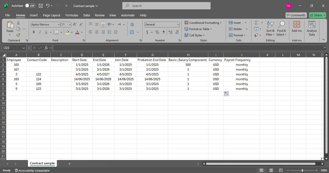 After successfully importing the assets via the Excel file, you can go to the “contracts” dropdown under “Payroll” in the main menu to find the contracts you uploaded to the system.