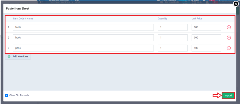 The system provides a quick and efficient way to import purchase invoice items directly from an Excel file instead of entering them manually. This helps you manage large numbers of items smoothly while reducing the chance of errors. The steps below explain how to prepare your Excel file and import it into a purchase invoice.