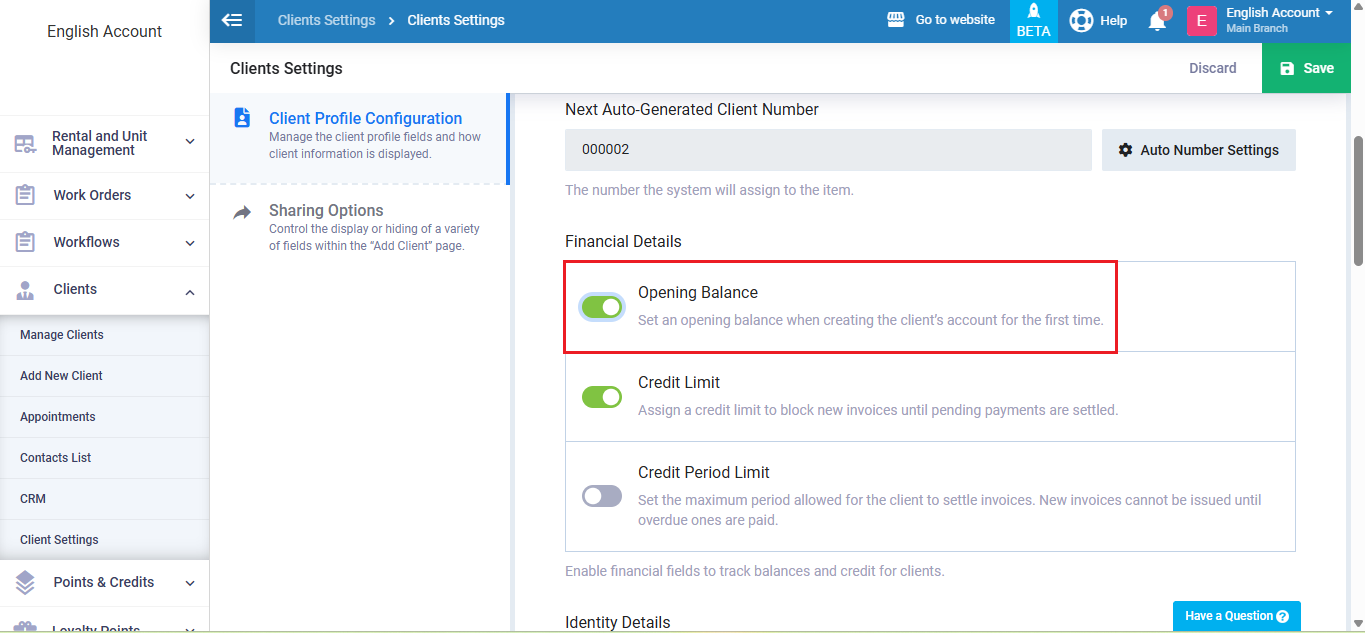 Opening balances for clients are included when adding a new client, or on an existing client file you already have. These balances are useful to know whether the client has a debt that requires payment or has a credit with financial dues at the company. This, of course, is in addition to clarifying the value of the monetary amount, whether it is credit or debit.