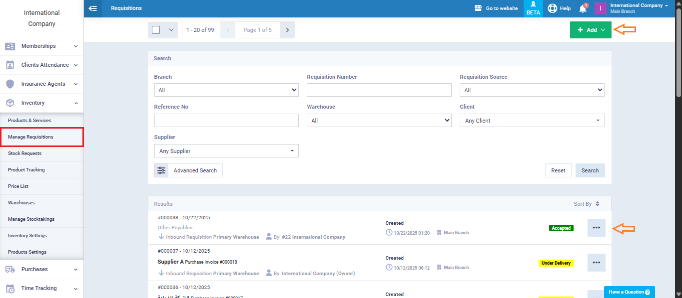 Go to the main menu and select “Inventory”, then choose “Manage Requisitions.”