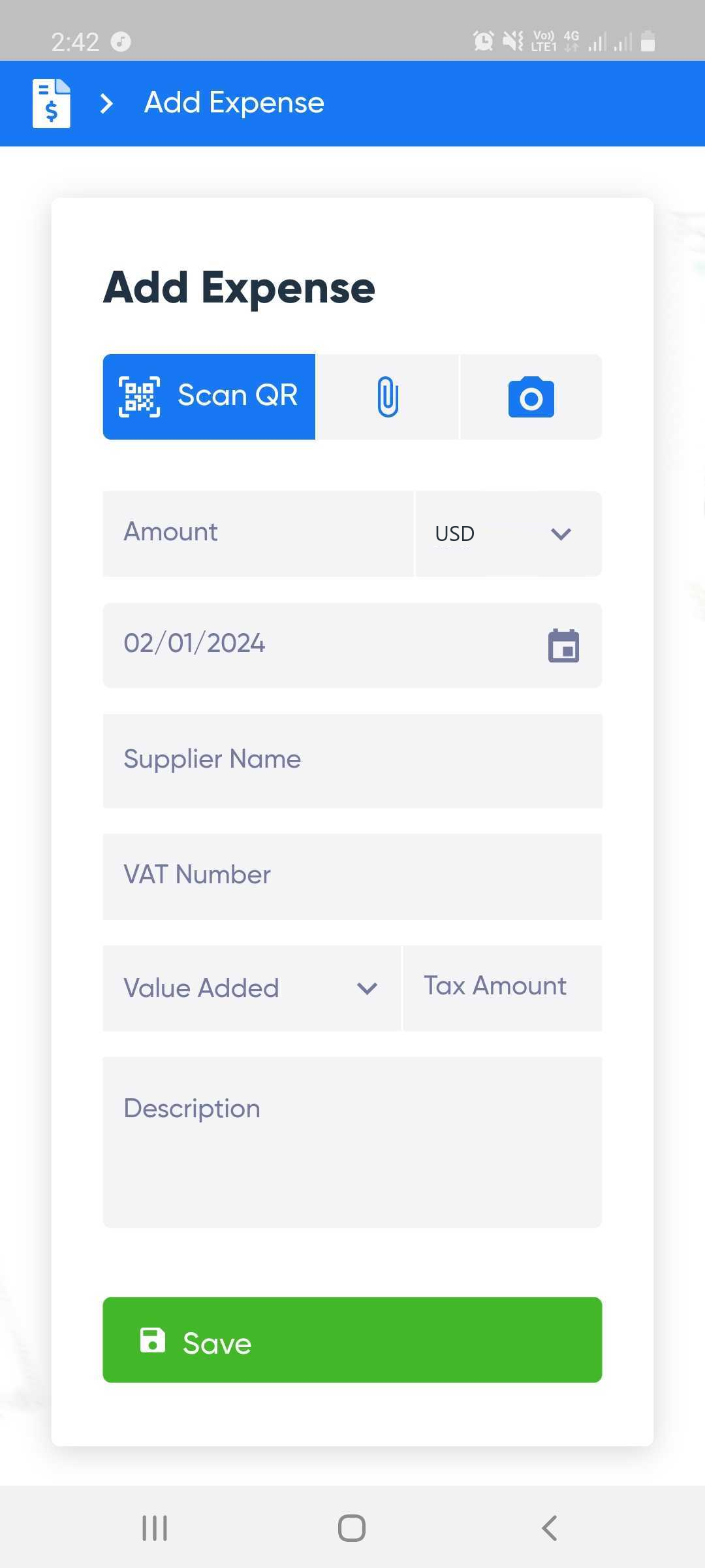 The Quick Expense Scanned App is a mobile app linked to the Enerpize expense program, enabling you to quickly record expenses manually or by uploading the purchase invoice, scanning the barcode embedded in it, and automatically extracting the data.