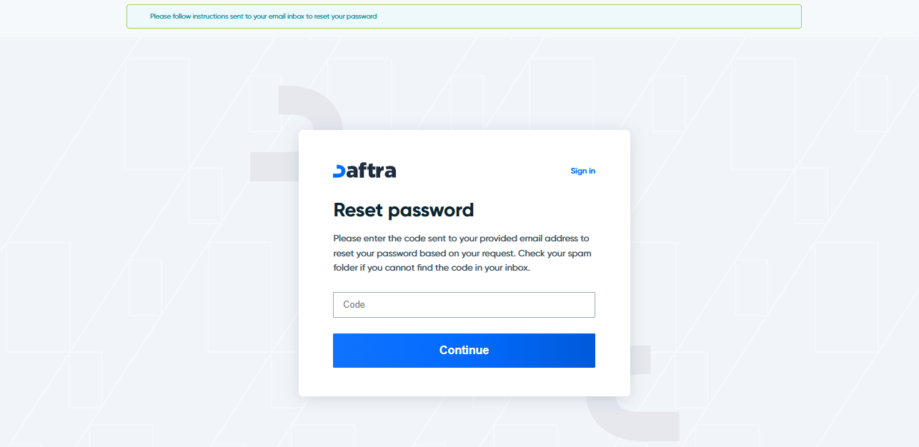 - Click on the link sent to your email, or copy the code from the email and enter it in the “Code” field on the password reset page.