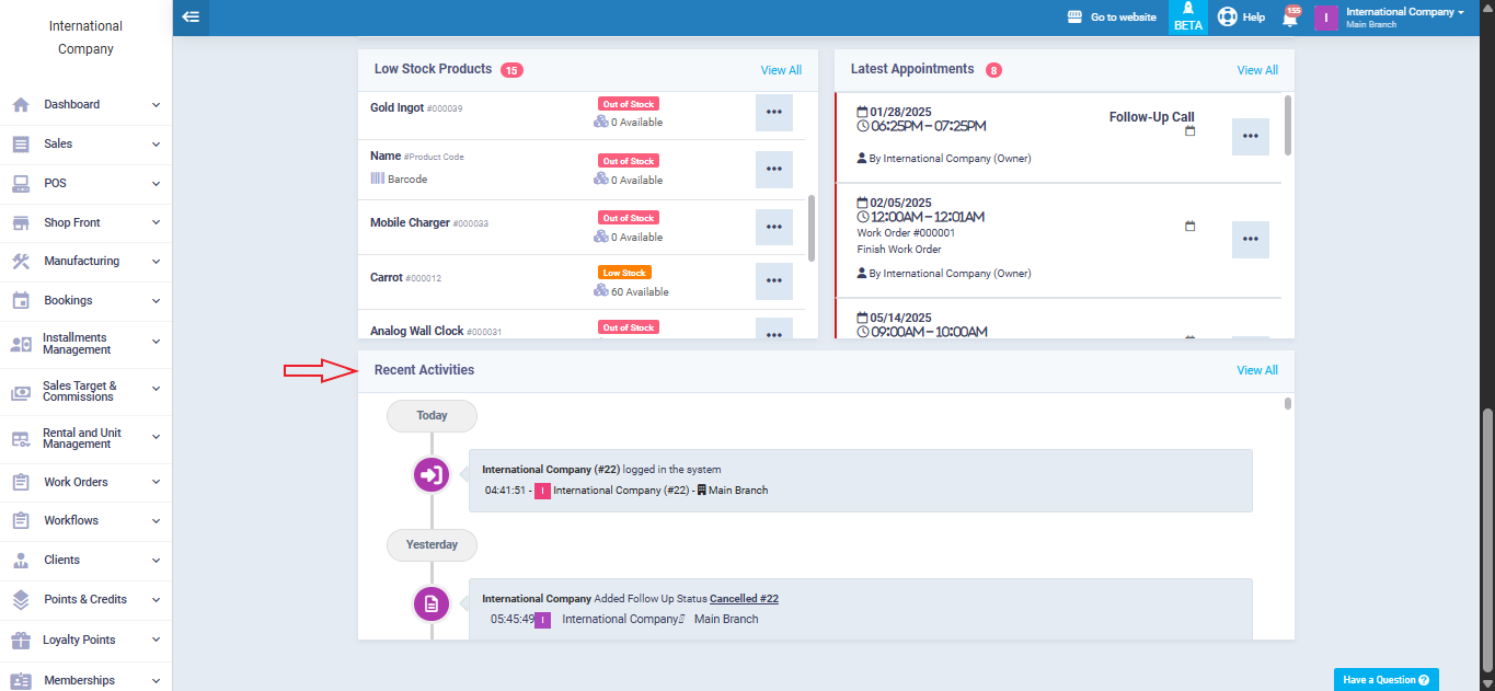 - Recent Activity (from Dashboard): Provides a quick view of the most recent changes directly on the main interface, suitable for daily monitoring rather than detailed auditing.