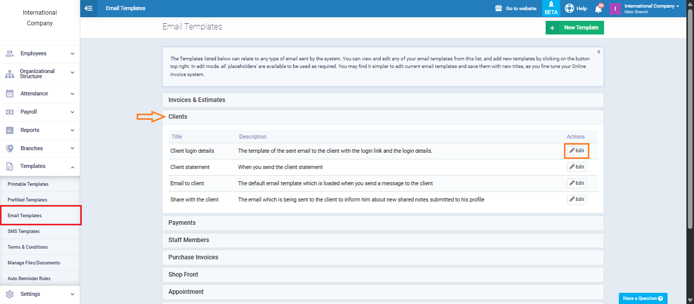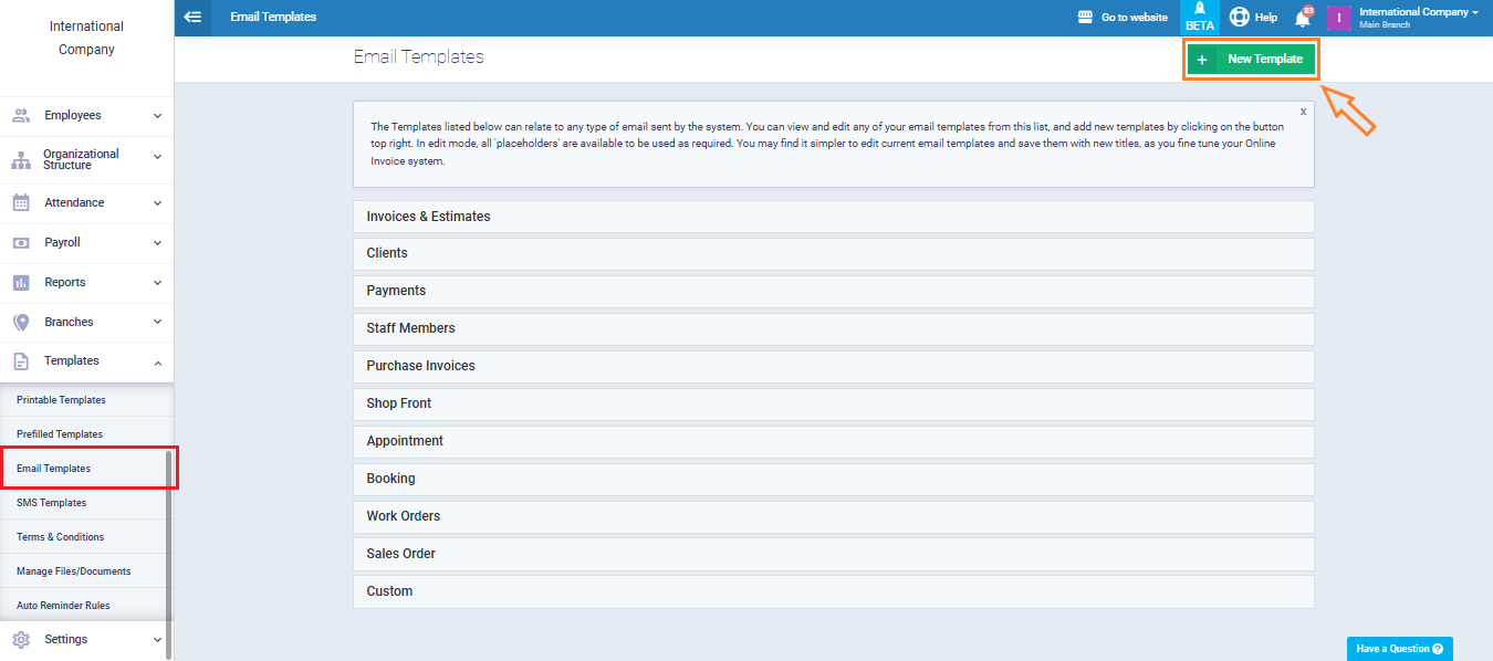 First, go to “Templates”, then from the dropdown menu, click “Email Templates.”